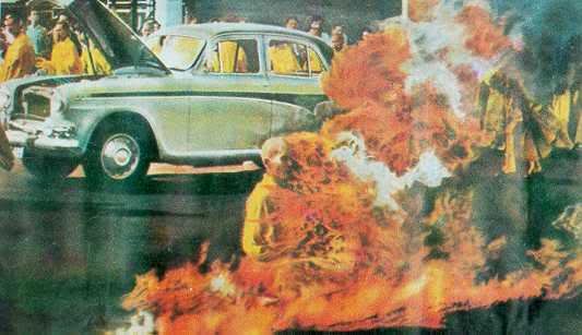 Tại ngã tư Lê văn Duyệt - Phan Đình Phùng Sài Gòn (nay là ngã tư Cách mạng Tháng Tám - Nguyễn Đình Chiểu, TP Hồ Chí Minh), ngày 11/06/1963 hòa thượng Thích Quảng Đức tự tẩm xăng ướt mấy lớp cà sa, ngồi kiết già và châm lửa tự thiêu.